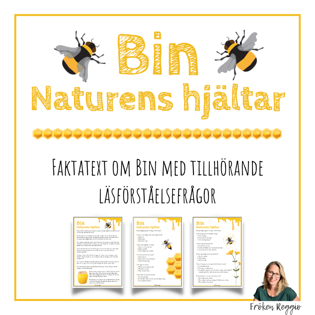 Bin är fantastiska små insekter som spelar en otroligt viktig roll i vår värld. Detta är ett läsförståelsematerial där eleverna får läsa en faktatext om bin och sedan svara på frågor genom att välja ett av svarsalternativen.