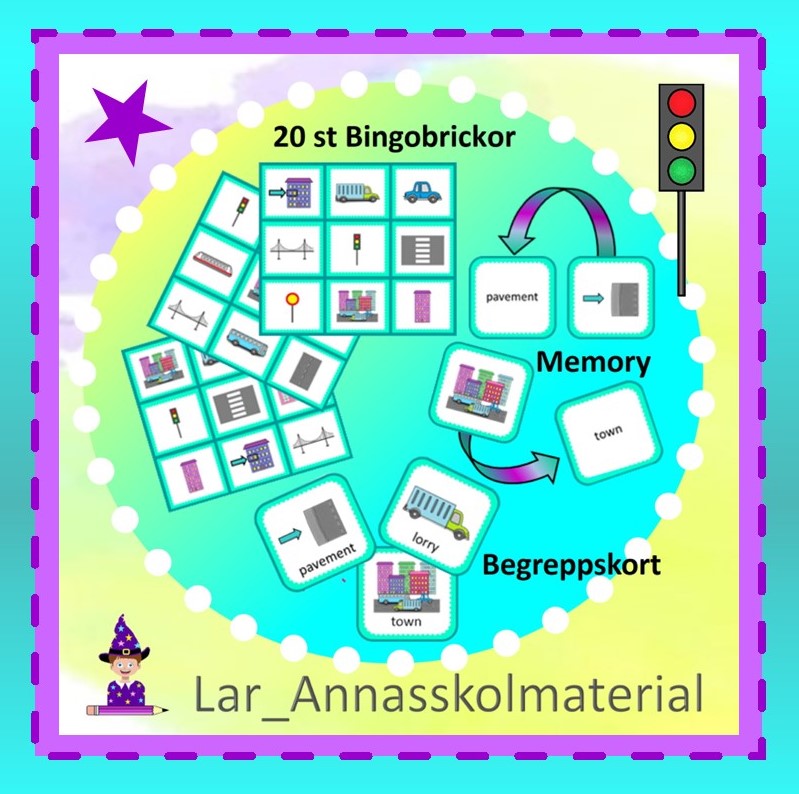 Detta ingÄr i Bingo, memory och begreppskort 3 i 1. Engelska Town
