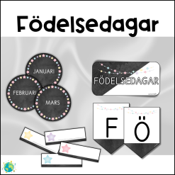 - Redigerbart material: namnskyltar till födelsedagar, namnskyltar, att göra-skyltar och presentation