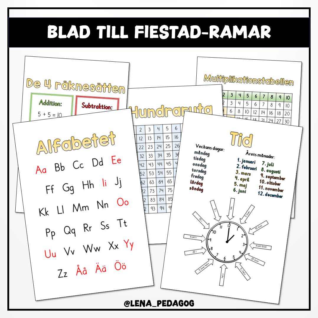 Alfabetet, hundrarutan, multiplikationstabellen, de 4 räknesätten och tid