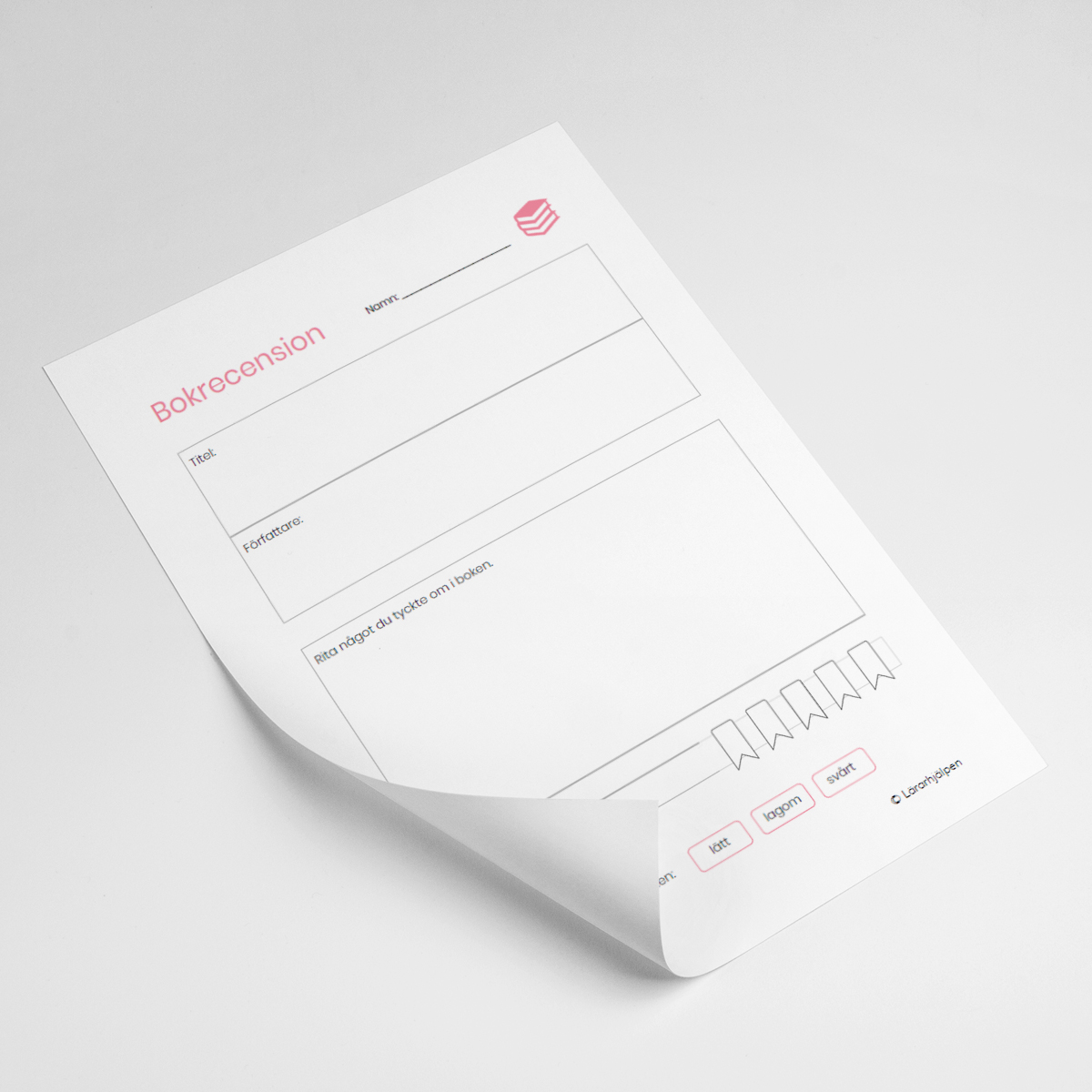 En bokrecension som dina elever kan använda för att recensera en utläst bok. Eleverna fyller i författare, bokens titel, omdöme 1-5 och gör en tregradig bedömning av språkets svårighet. Eleven ritar även något som han eller hon tyckte om i boken.