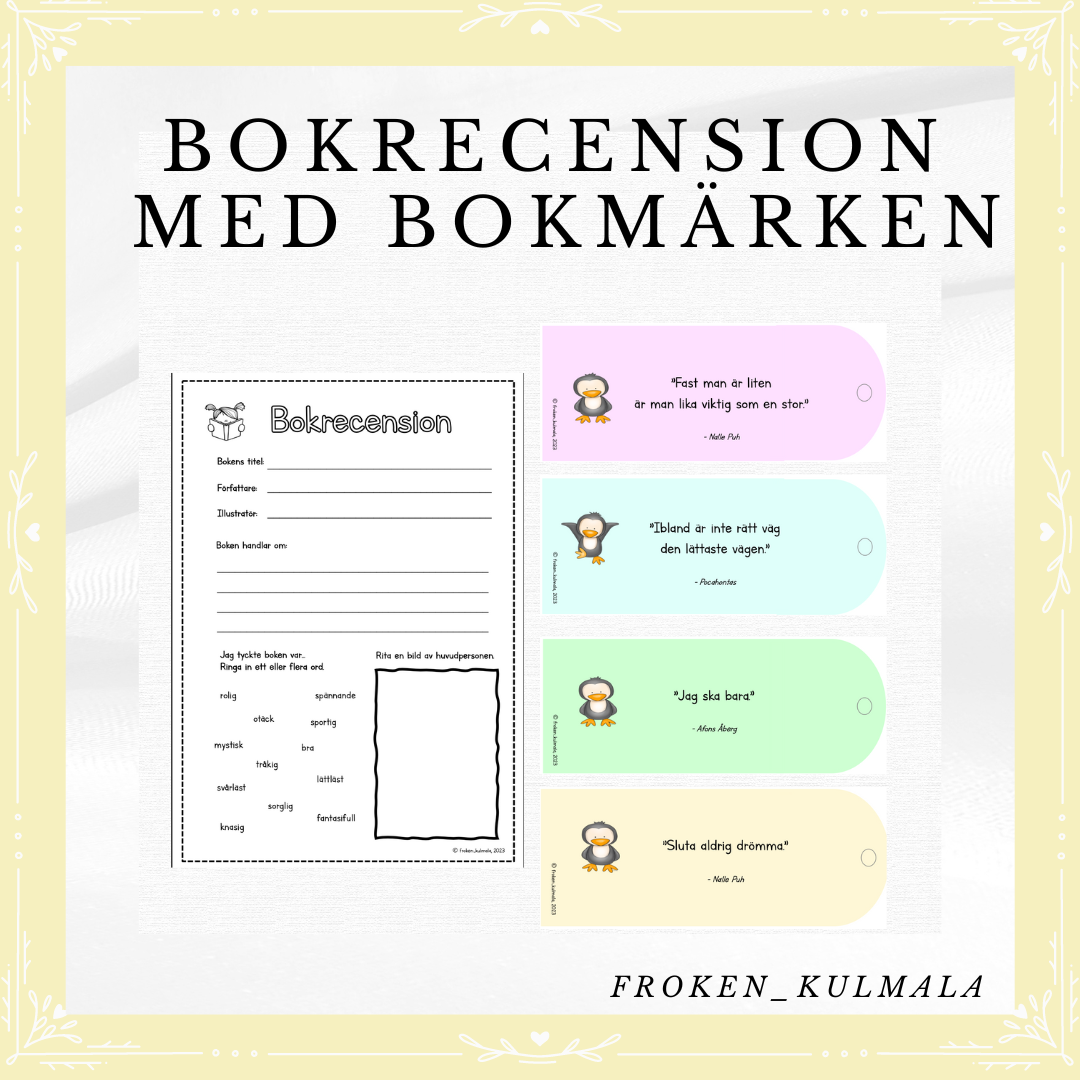 Uppmuntra eleverna med fina pastellfärgade bokmärken med citat från sagofigurer. Bearbeta sedan den lästa boken med en bokrecension.