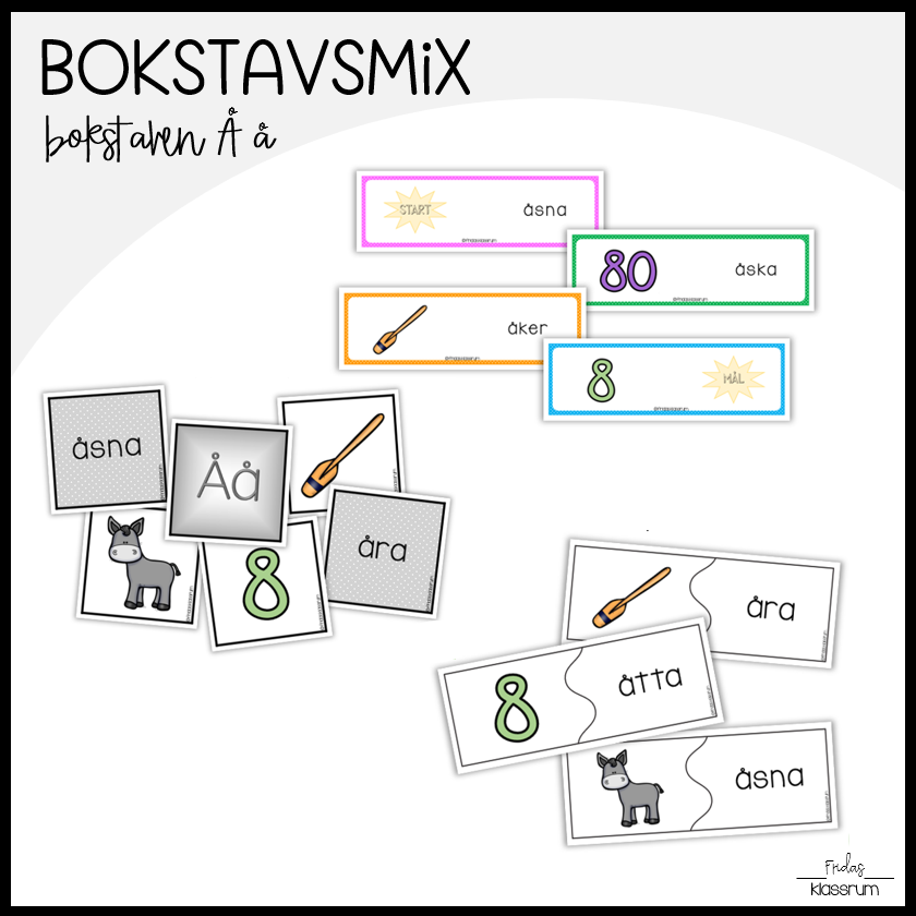 Materialpaket för att träna på bokstaven Åå genom spel.