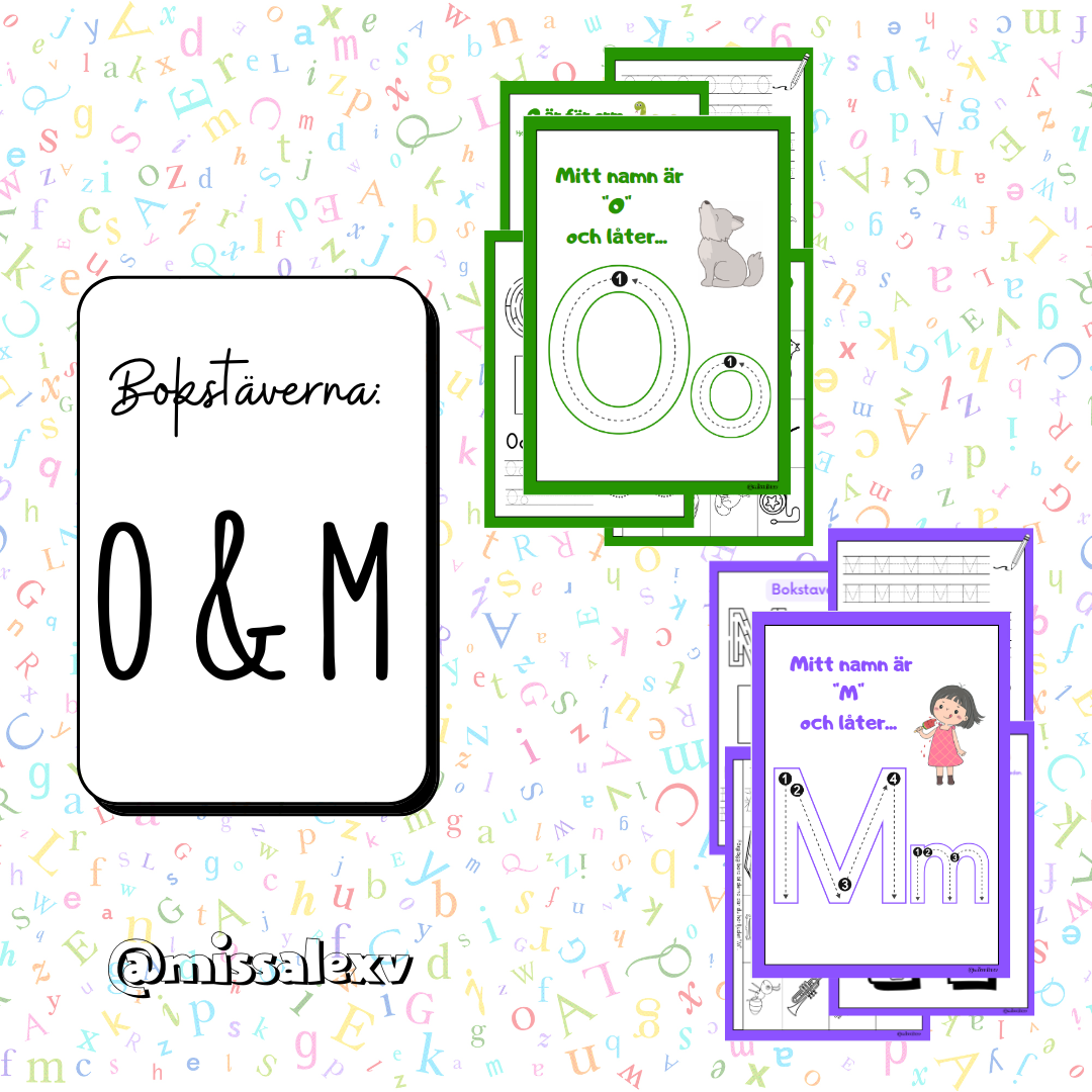 Ett arbetsblad för att träna på bokstäverna O och M.