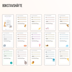 Bokstavshäfte med alla bokstäver i alfabetet. Tydliga linjer för formandet av bokstäver, samt en ruta där eleverna ska skriva eller rita ord som har den aktuella bokstaven först i ordet. Skriv ut som komplett häfte eller använd som lösa arbetsblad vid arbete med veckans bokstav.