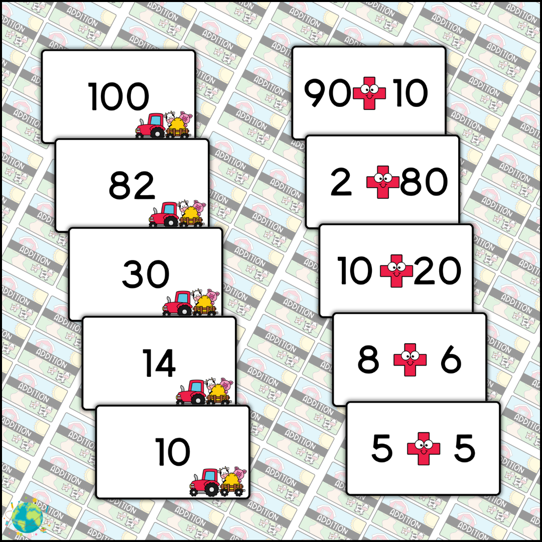Additionskort där eleverna tränar på enkel addition 0-100.