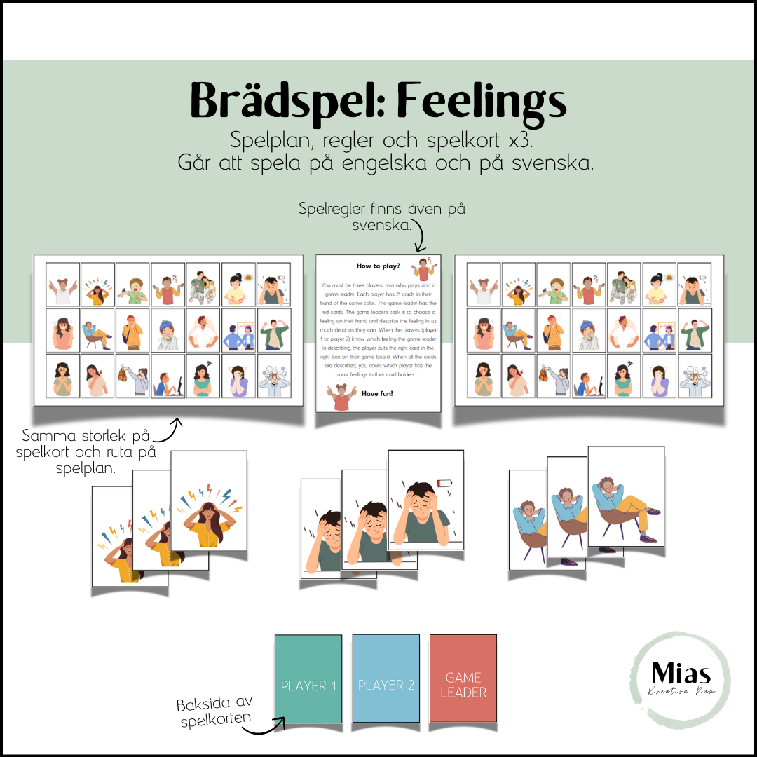 I spelat behöver man vara tre spelare. En spelledare (den som beskriver känslan) och två spelare (de som lyssnar på beskrivningarna och tränar på att förstå). Spelledaren väljer en känsla på sin hand att beskriva och när en av spelarna förstår vilken känsla som beskrivs lägger hen känslan snabbt på rätt ruta på sin spelplan. Bestäm regler i klassen om det är okej att säga ordet för känslan eller om spelledaren ska försöka beskriva känslan med andra ord.