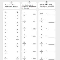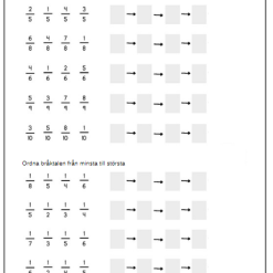 I det här arbetshäftet finns 8 sidor där eleverna tränar på att räkna med bråk.