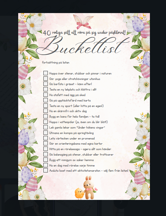 Letar du efter ett sätt att inspirera dina elever till rörelse och utevistelse under påsklovet? Då är denna färgglada och elevvänliga Bucketlist precis vad du behöver!
