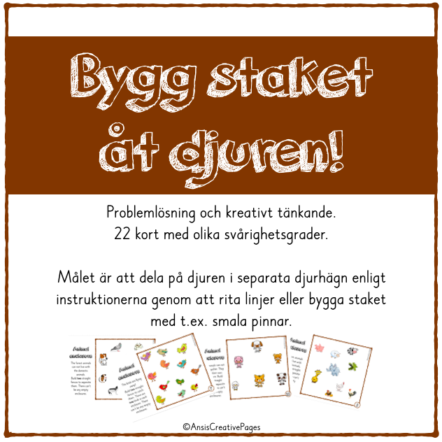 Målet är att dela på djuren i separata djurhägn enligt instruktionerna genom att rita linjer eller bygga staket med t.ex. smala pinnar.
