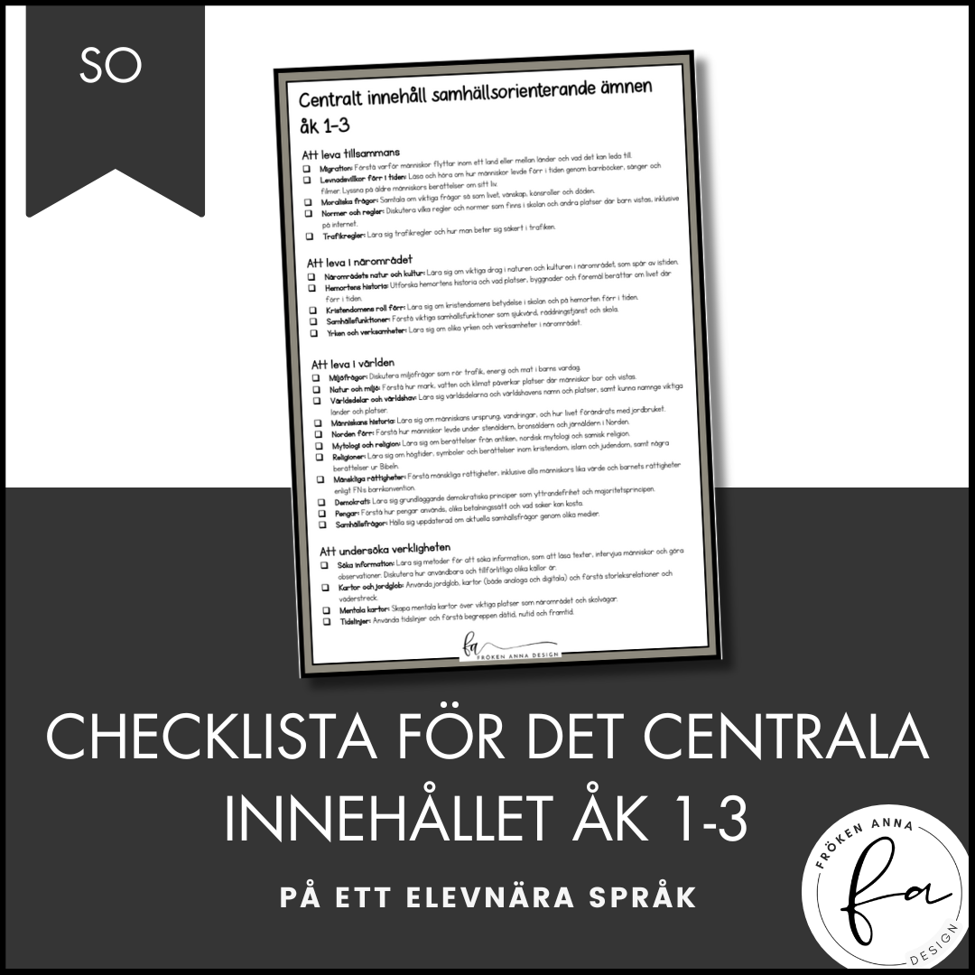 Detta ingår i CHECKLISTA över det Centrala innehållet åk 1-3 på ett elevnära språk: SO