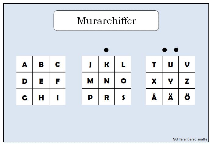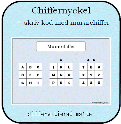 Chiffernyckel/kodnyckel. Låt eleverna få skriva meddelanden med kod genom att använda denna kodnyckel.