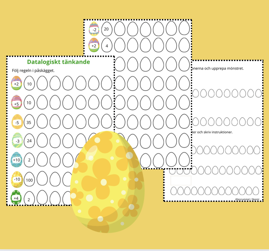 Tre sidor följa regel, skriva regel och upprepa mönster. Addition och subtraktion.