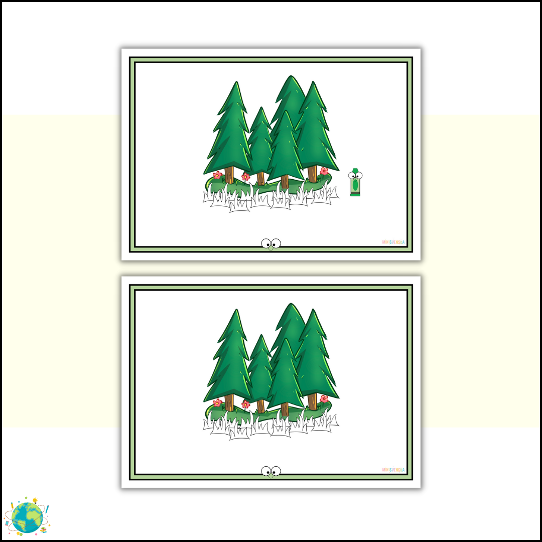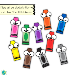 - Eleverna kan själva klippa ut de små kritorna och klistra in på de olika bilderna och berätta berättelsen.