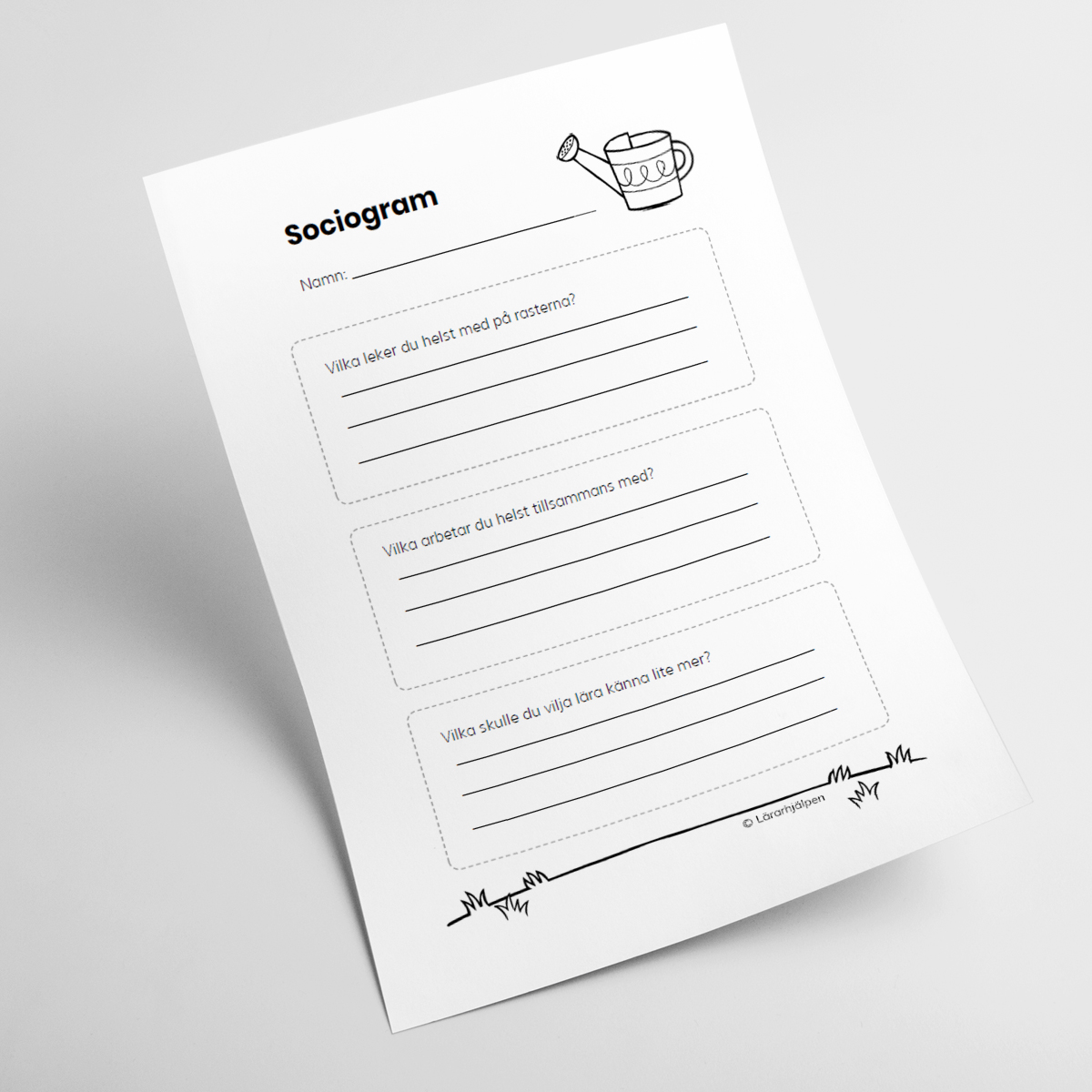 Använd dokumentet för att kartlägga elevernas sociala relationer i klassen. Med hjälp av ett sociogram synliggörs vilka elever som är utanför. Du kan exempelvis använda dokumentet som underlag när du bestämmer platser i klassrummet. Inkluderar en version i färg och en i svartvit.