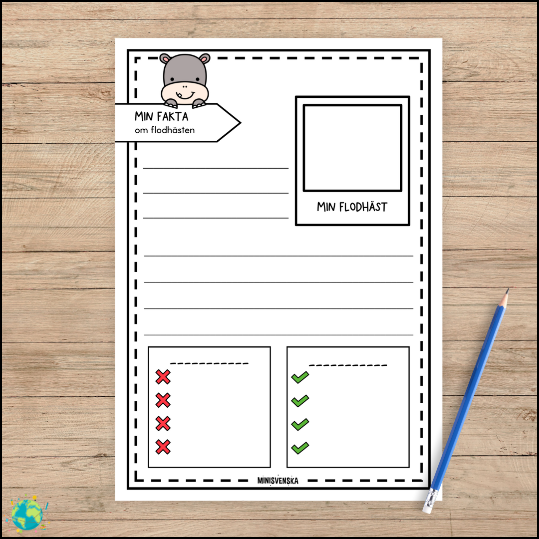 – Faktaövning där eleverna får skriva sin egen lilla fakta om flodhästen