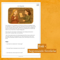 På Frö-nivån tränar eleverna på att hitta information direkt i texten. Enklare resonemangsfrågor kan förekomma. Frågorna är tydliga och konkreta och hjälper eleverna att öva på basal läsförståelse: Vad står det? Vem gjorde vad? Var händer det?