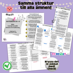 - Planera, checka av, kontrollera kriterier, lektionsplanera för din undervisning i åk 4-6.