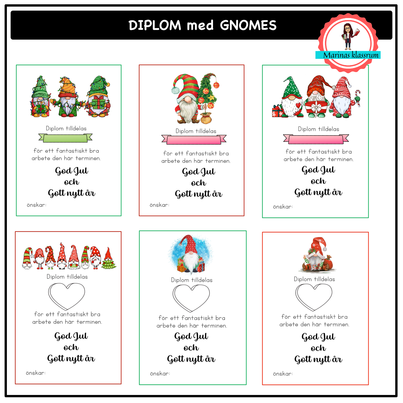 Diplom till jul med söta gomes i 6 olika motiv att välja på.