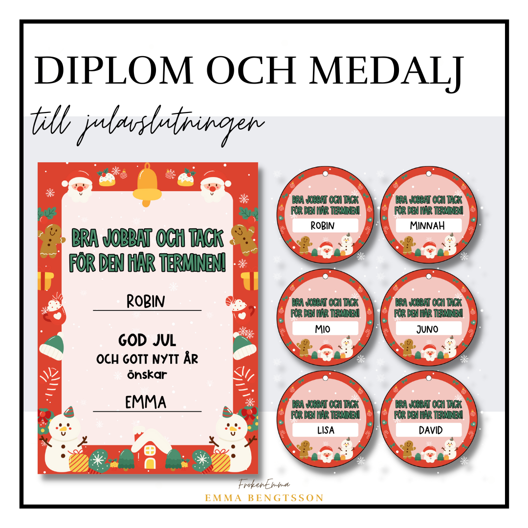 Juligt diplom och medalj att dela ut på julavslutningen!