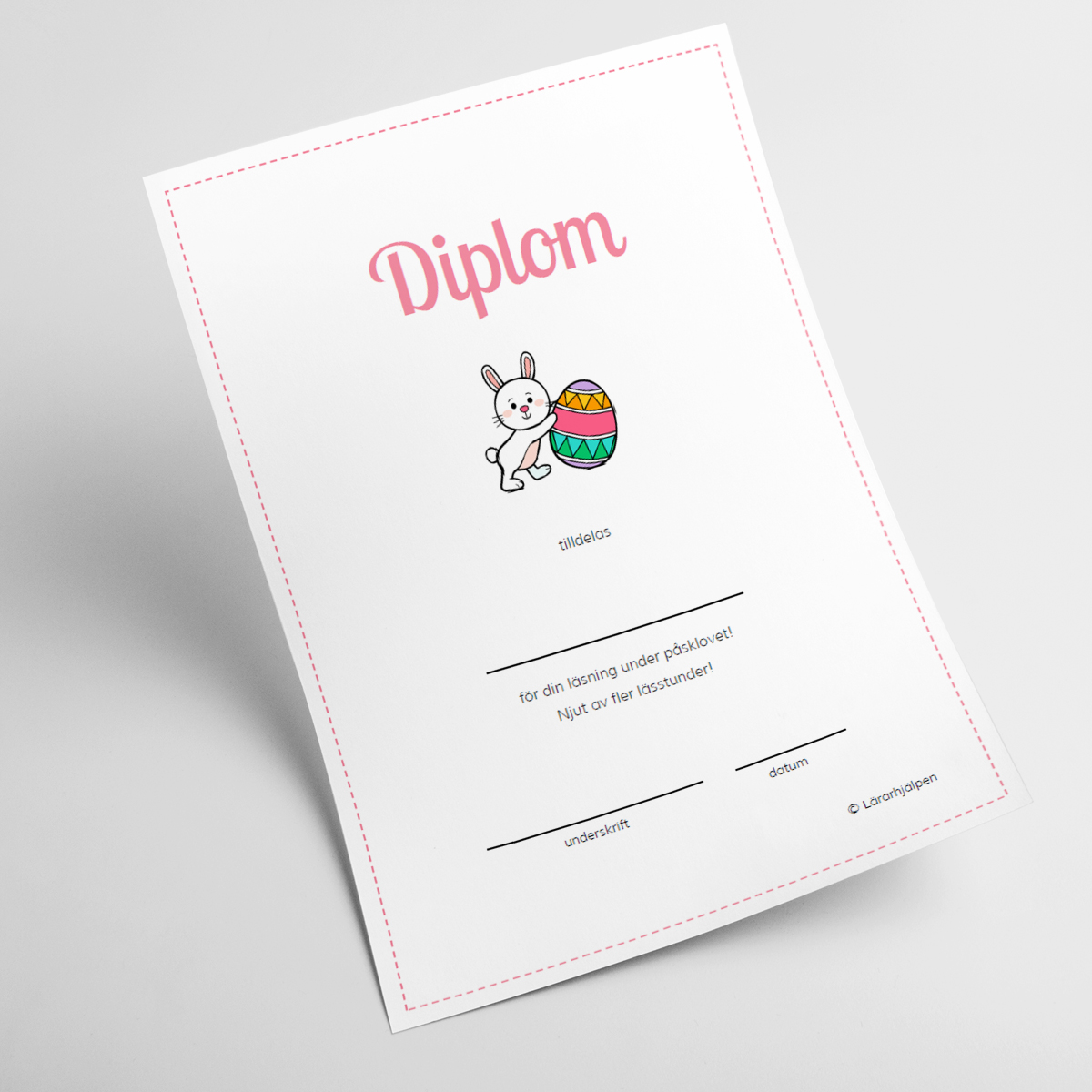 Ett diplom som tillhör påsklovets läsbingo. Inkluderar både en version i färg och en svartvit.
