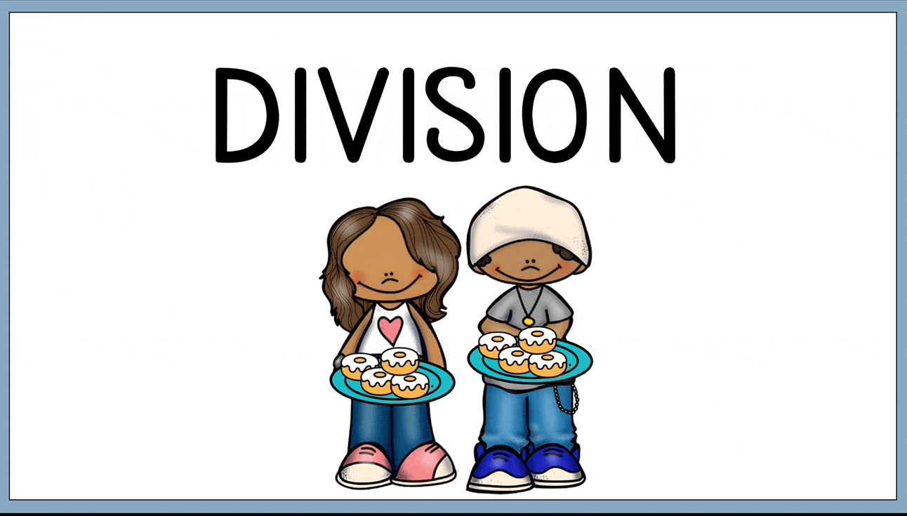 Presentationen börjar med ord och begrepp knutna till räknesättet och fortsätter därefter med övningar där elev/lärare flyttar objekt för att tydliggöra division.