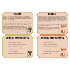 6 kort med en enkel faktatext om 6 olika djur i Norden.