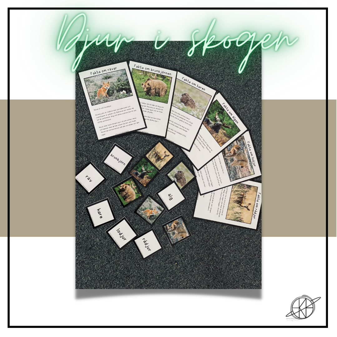 Materialet kan användas som det är eller tillsammans med ”Min bok om djur och natur”, i kapitlet ”Djur i skogen” tas samma djur upp och samma bilder används.