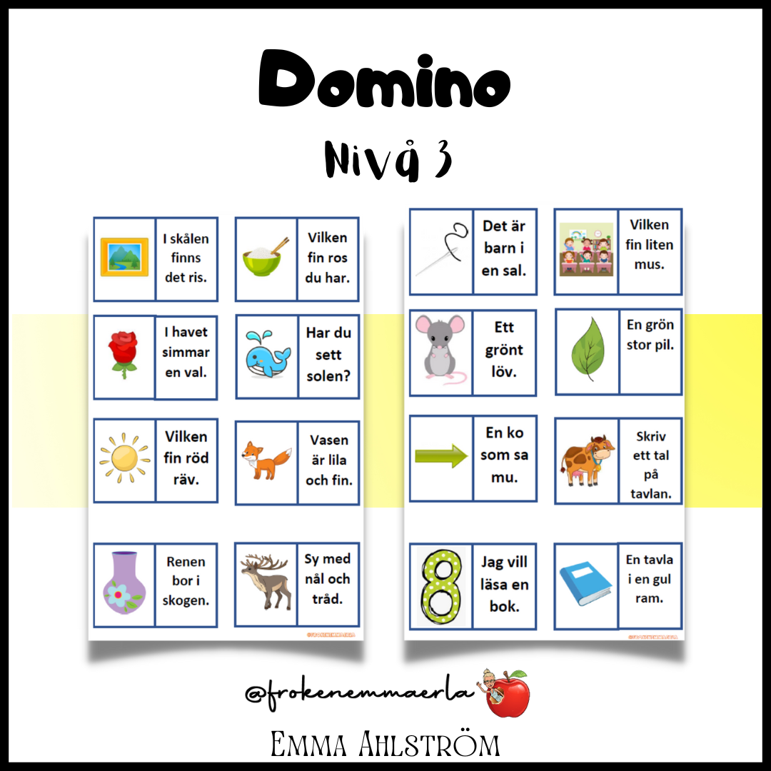 Enkla ord att läsa och para ihop med rätt bild i början av läsinlärningen.