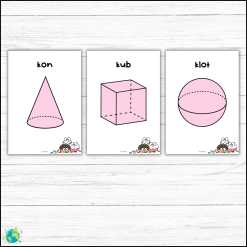 18 stycken geometriska former med donut-tema