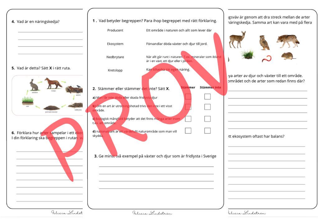 Detta ingår i Ekosystemet - Prov, facit och instuderingspapper.