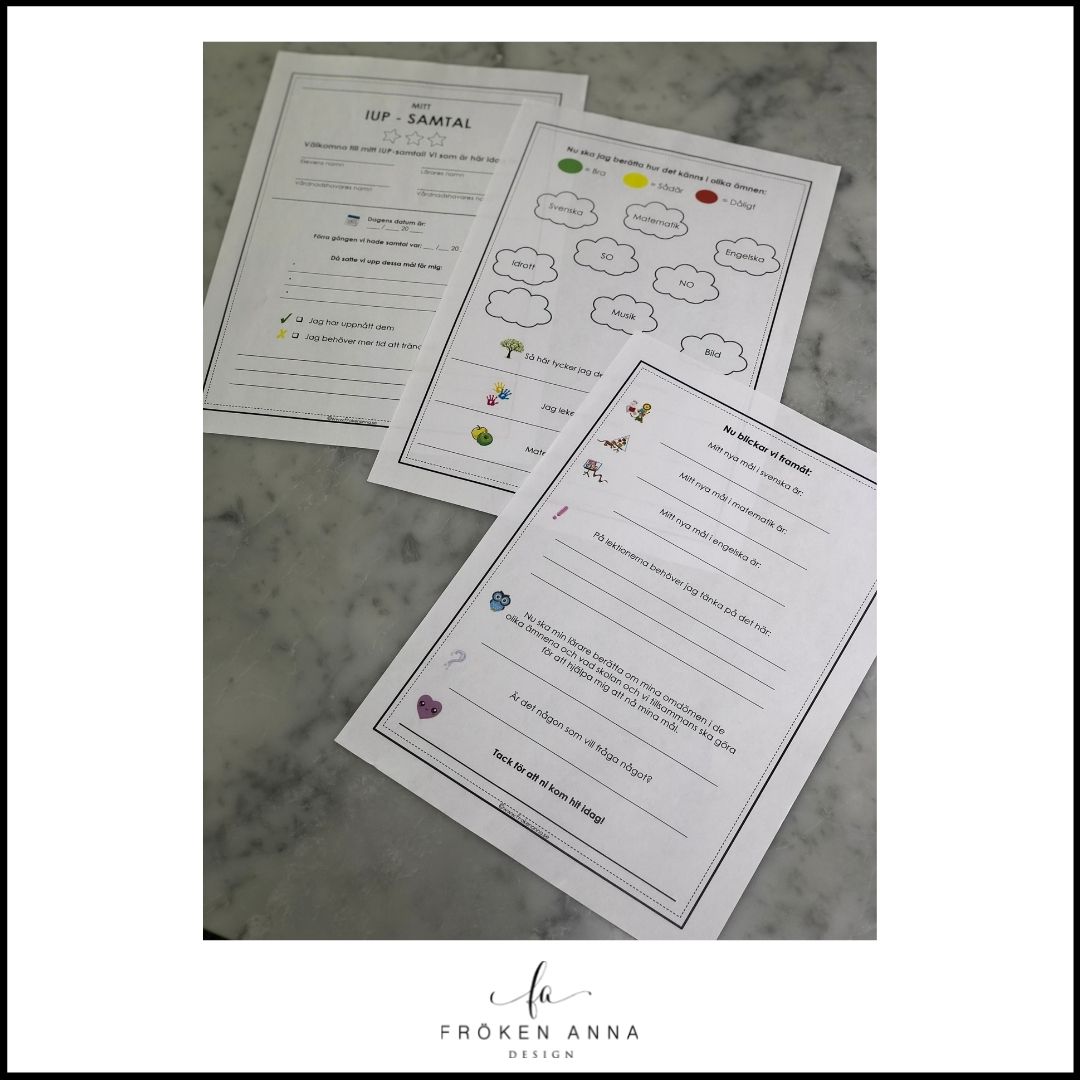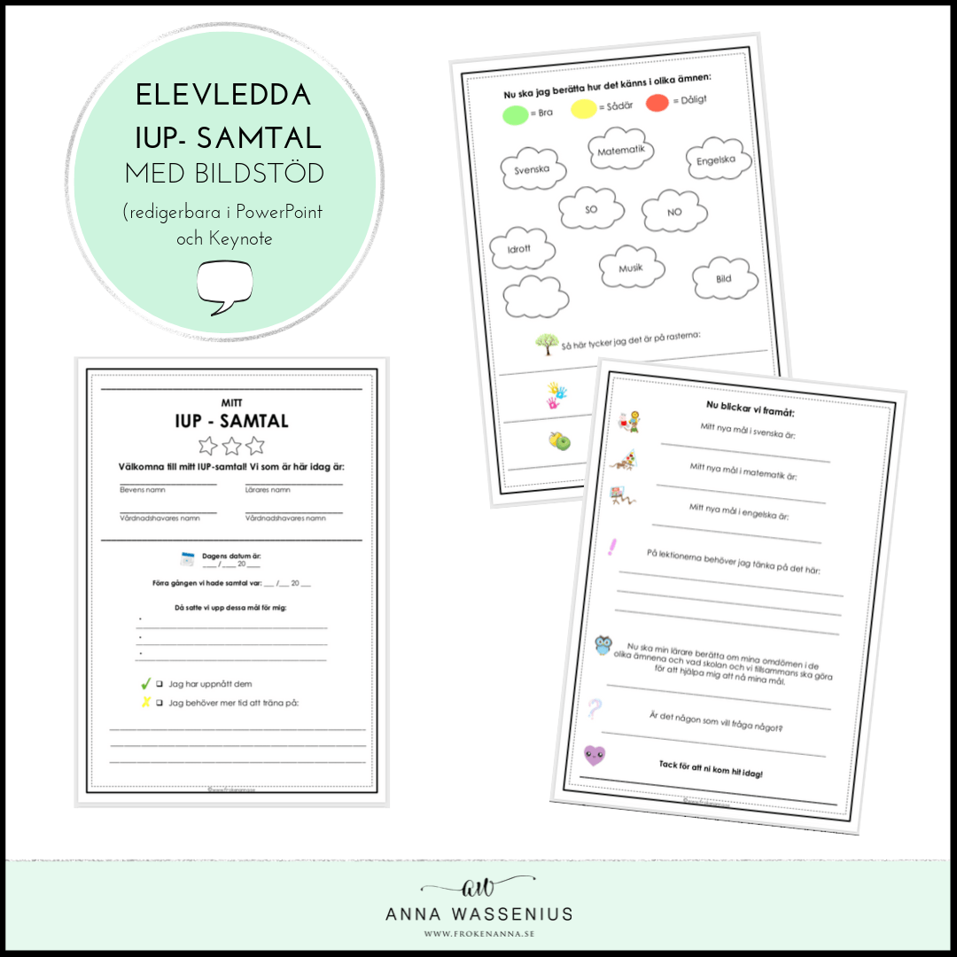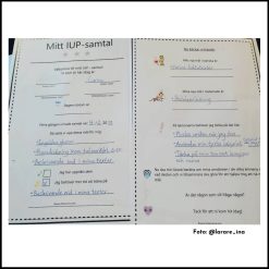 I detta material ingår tre A4 med frågor förstärkta med bildstöd så eleverna lätt kan orientera sig i materialet. Samtalet inleds med en tillbakablick sedan förra samtalet och en reflektion över de mål som då sattes upp då. Därefter får eleven berätta ur det känns i de olika ämnena, hur det är på raster, med vänner och matsituation. Avslutningsvis berättar eleven om sina nya mål och vad eleven själv behöver tänka på för att nå dessa mål.