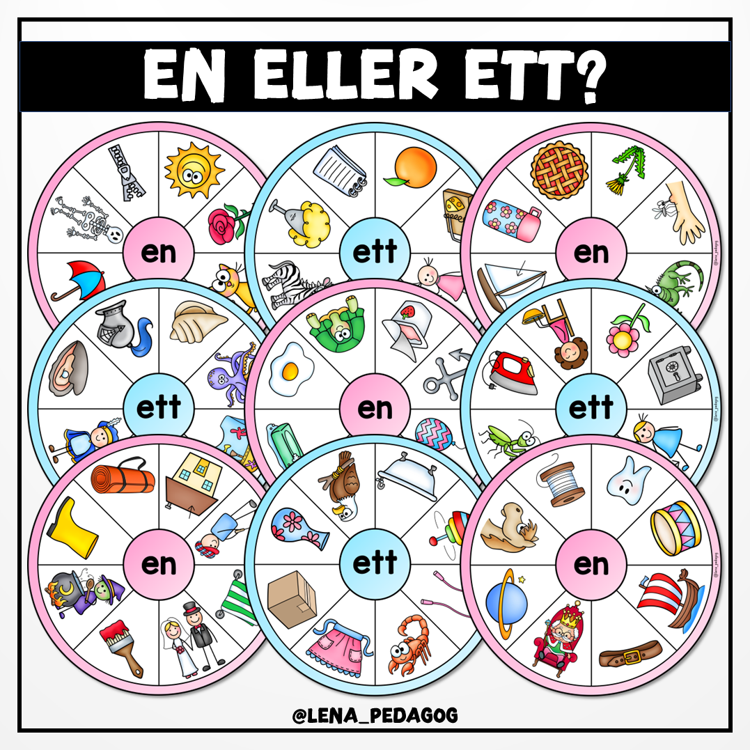 20 nypkort i cirklar (10 med en, 10 med ett) att fästa klädnypor på.