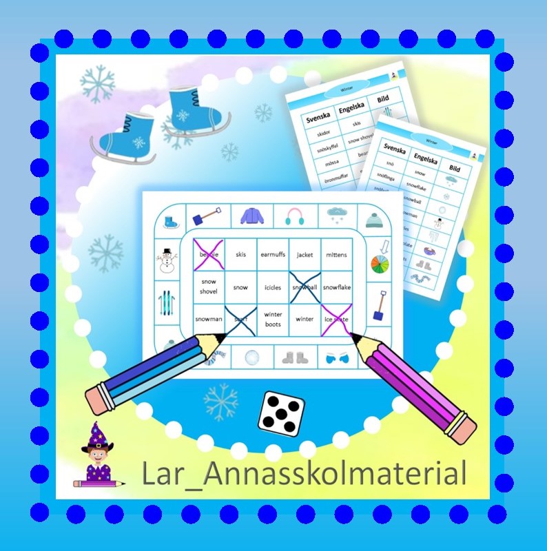 Titta på bilden som din spelpjäs hamnar på. Kryssa för ordet i mitten av spelplanen.