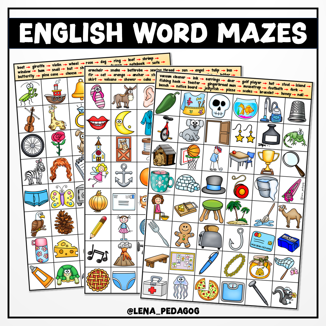 Hitta bilden som överensstämmer med ordet från toppen till botten av papperet.