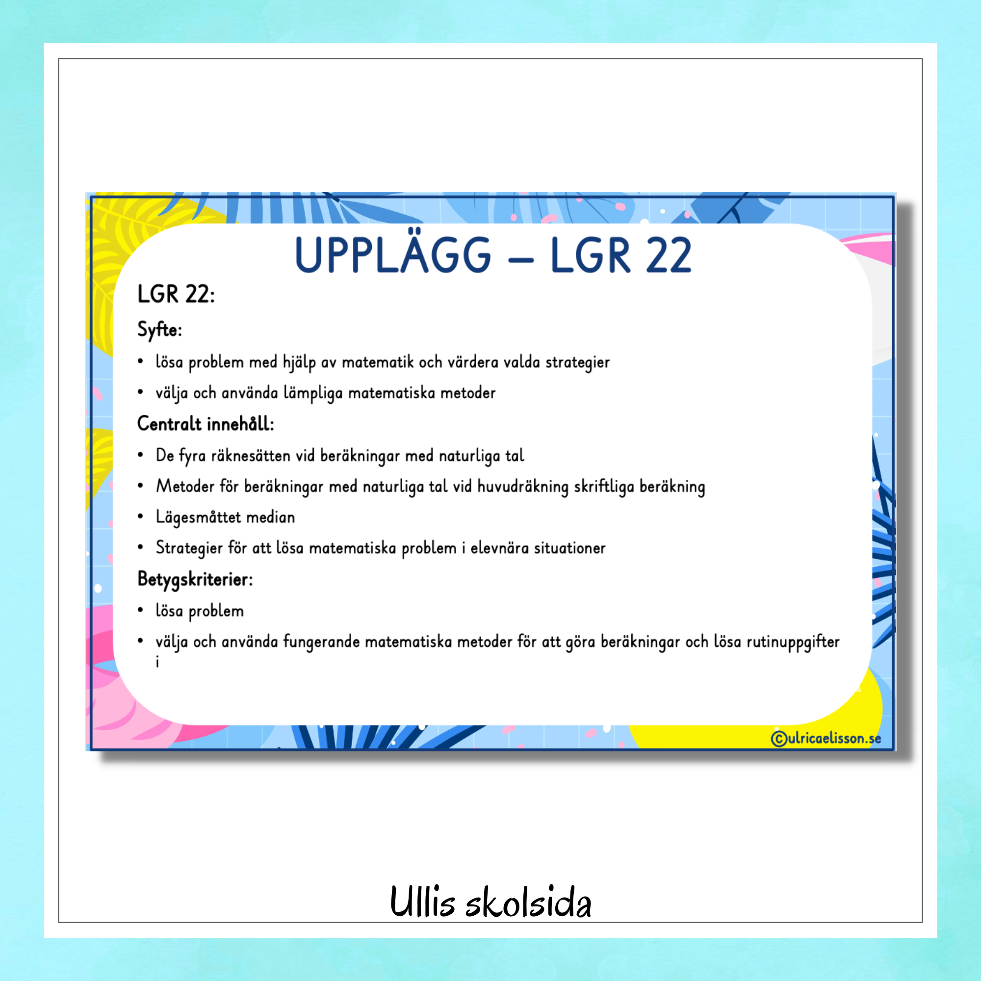 Upplägget är tänkt att användas i åk 4-6 men går att använda även i andra åldrar. En del av uppdragen går att genomföra på olika nivåer och eleverna kan även använda miniräknare om de är yngre.