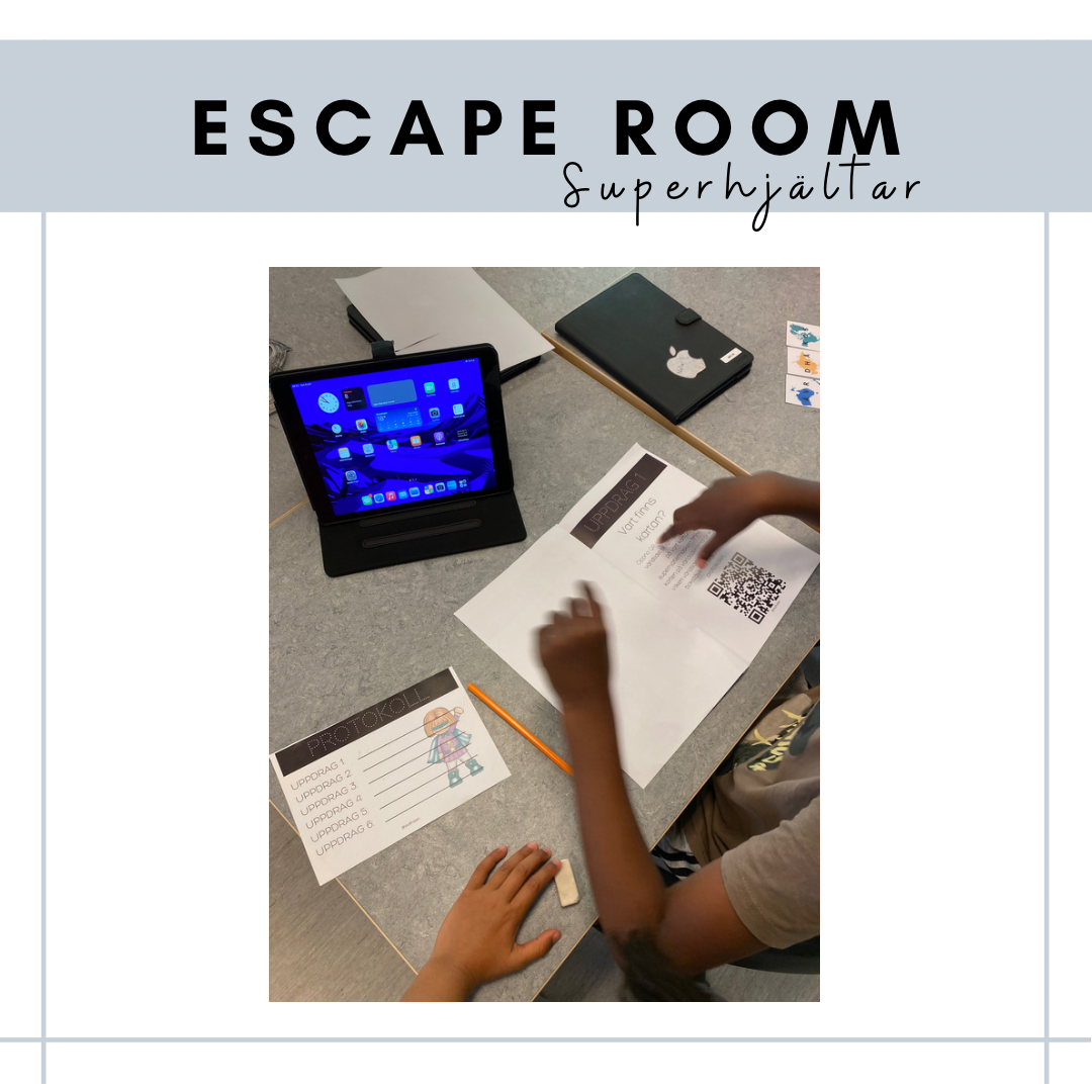 I detta escape room kommer eleverna att arbeta med matematik, samhällskunskap samt svenska. I slutändan kommer de ha samlat ihop bokstäver till ett meddelande som öppnar det sista brevet där superhjältemasken finns. För att genomföra detta Escape room behövs en iPad eller liknande för att kunna öppna QR-koder. Den är delvis analog och delvis digital. Passar åk 2 eller 3.