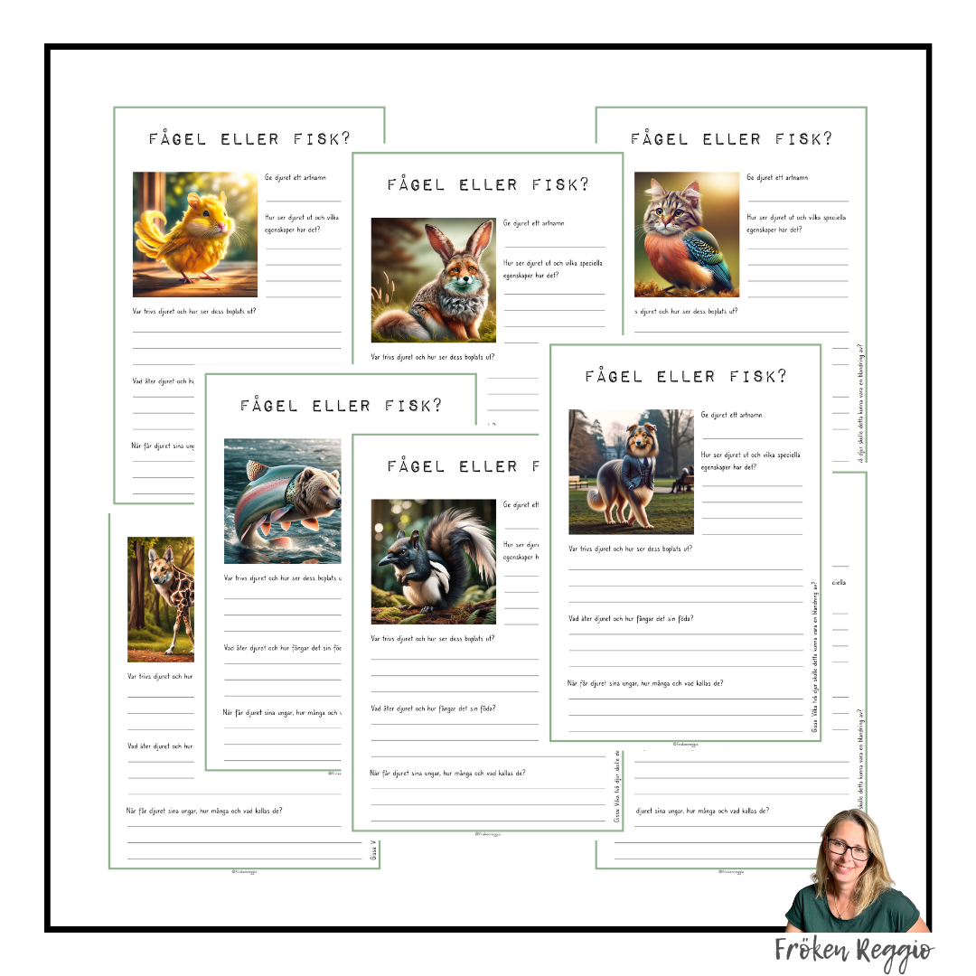 En fantasifull övning du kan göra med dina elever för att till exempel träna på beskrivande text. Materialet innehåller åtta arbetsblad med olika fantasidjur. Eleverna ska hitta på ett artnamn, beskriva utseende, egenskaper, föda, boplats och ungar. På sidan av bladet kan de gissa vilka djur bilden är en sammanblandning av. Inkluderat i materialet finns ett underlag för att skriva en faktatext om djuret.