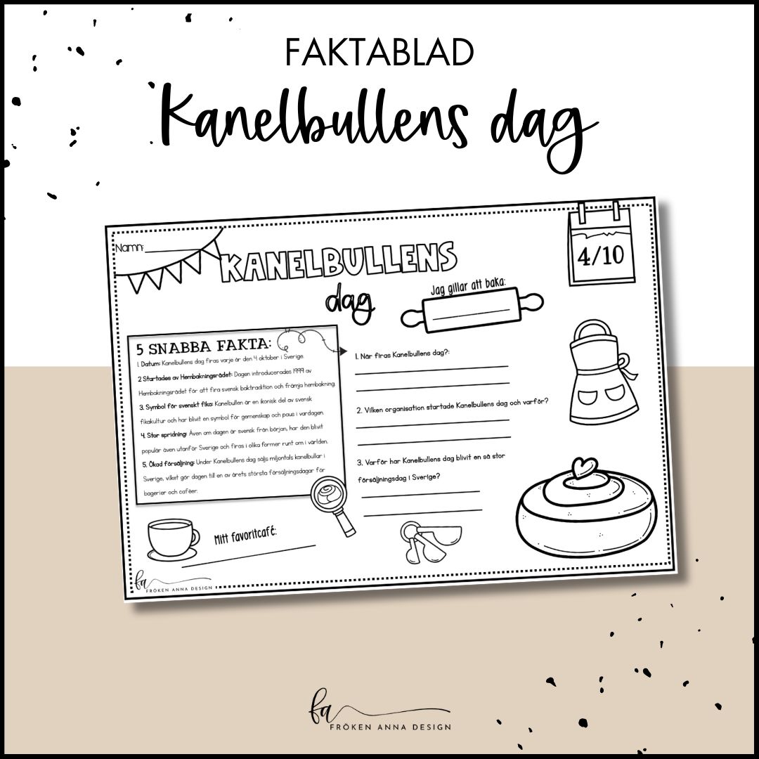 Fira Kanelbullens dag med detta roliga och informativa arbetsblad! Perfekt för elever i årskurs 1-3 som vill lära sig mer om den populära svenska traditionen. Med detta faktablad får eleverna utforska spännande fakta, svara på frågor och reflektera över varför kanelbullen har en speciell plats i våra hjärtan.