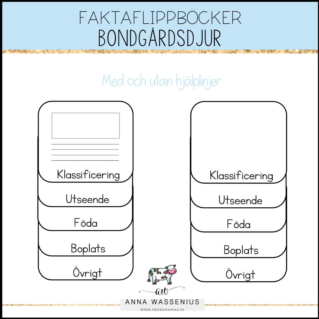 Totalt ingår 14 olika bondgårdsdjur som eleverna kan välja mellan och skrivmallarna kommer i två utföranden: med textrader och bildruta samt helt blanka.