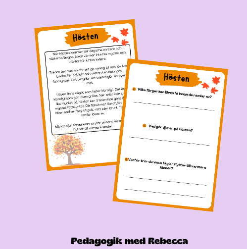 Ett arbetsblad med en fakta om HÖSTEN med tillhörande frågor utifrån faktatexten.