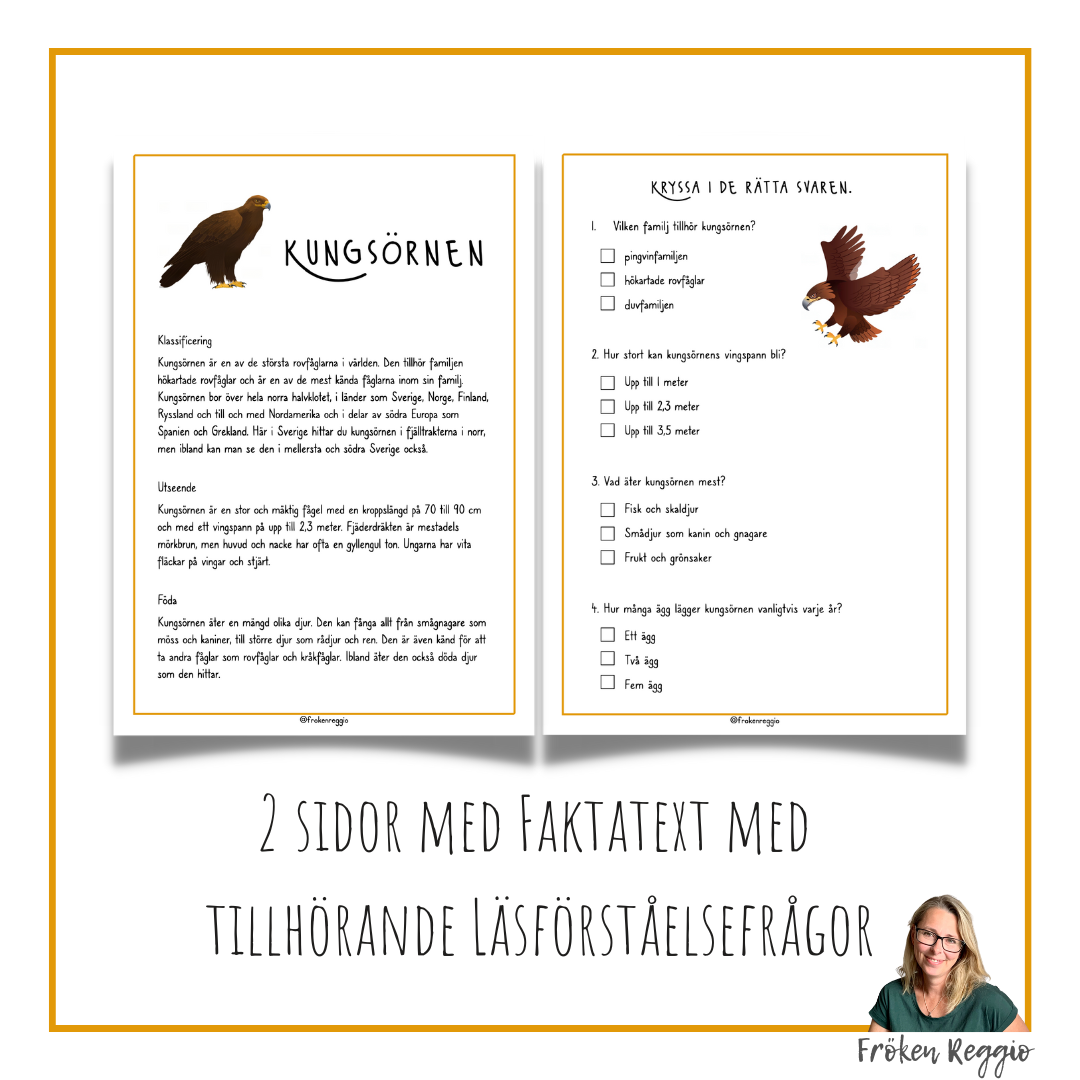 Låt eleverna fördjupa sina kunskaper genom att läsa en faktatext om kungsörnen och utmana sig själva med de tillhörande läsförståelsefrågor.