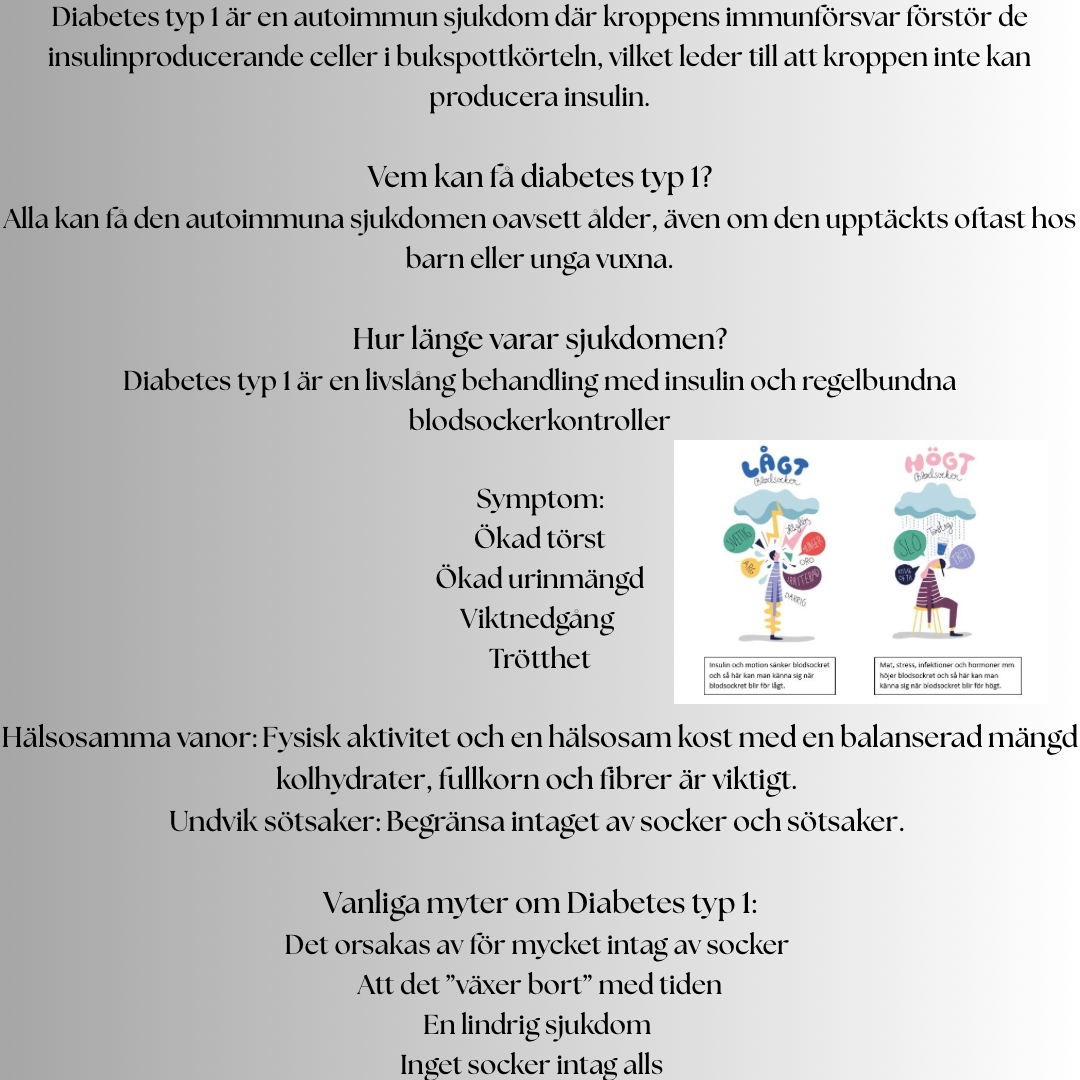Faktatext för er som vill lära sig lite mer om diabetes typ 1.