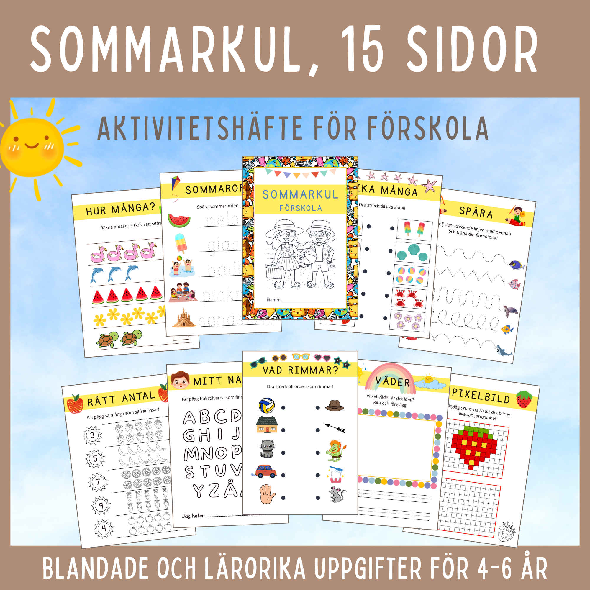 Färgglatt aktivitetshäfte för förskolan – 15 sidor med lekfullt lärande och pyssel!