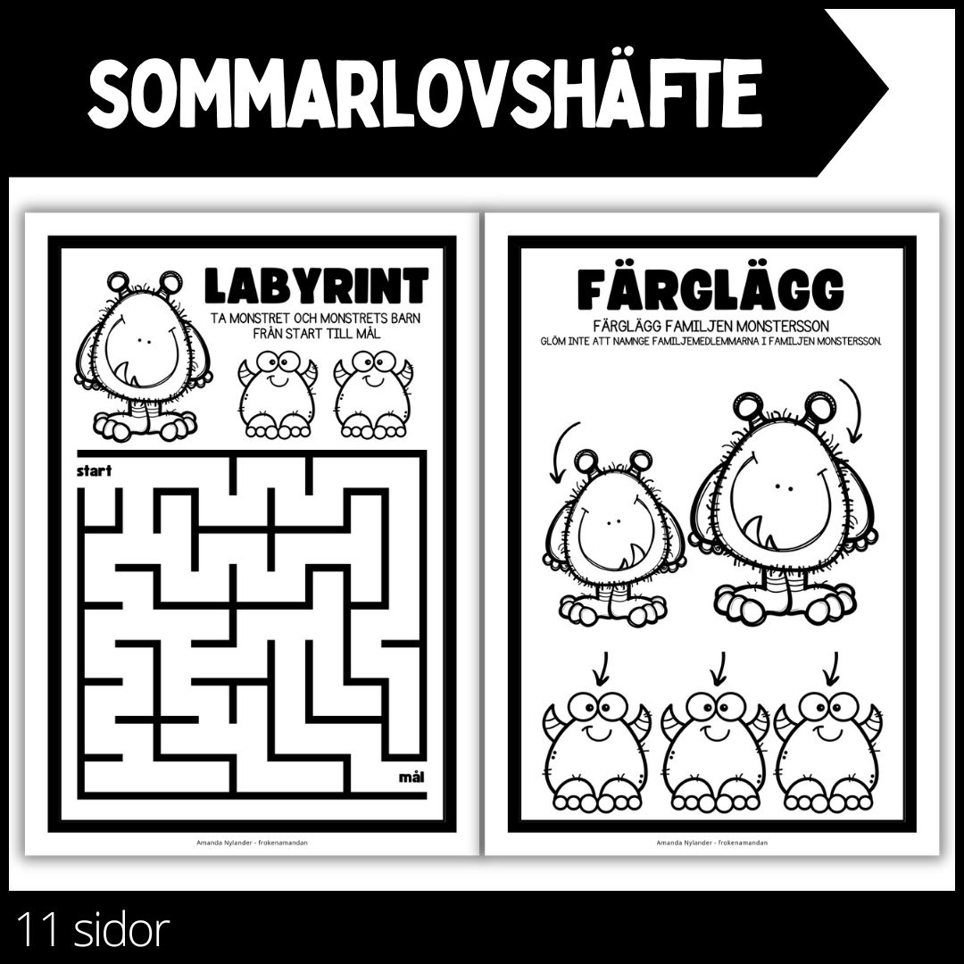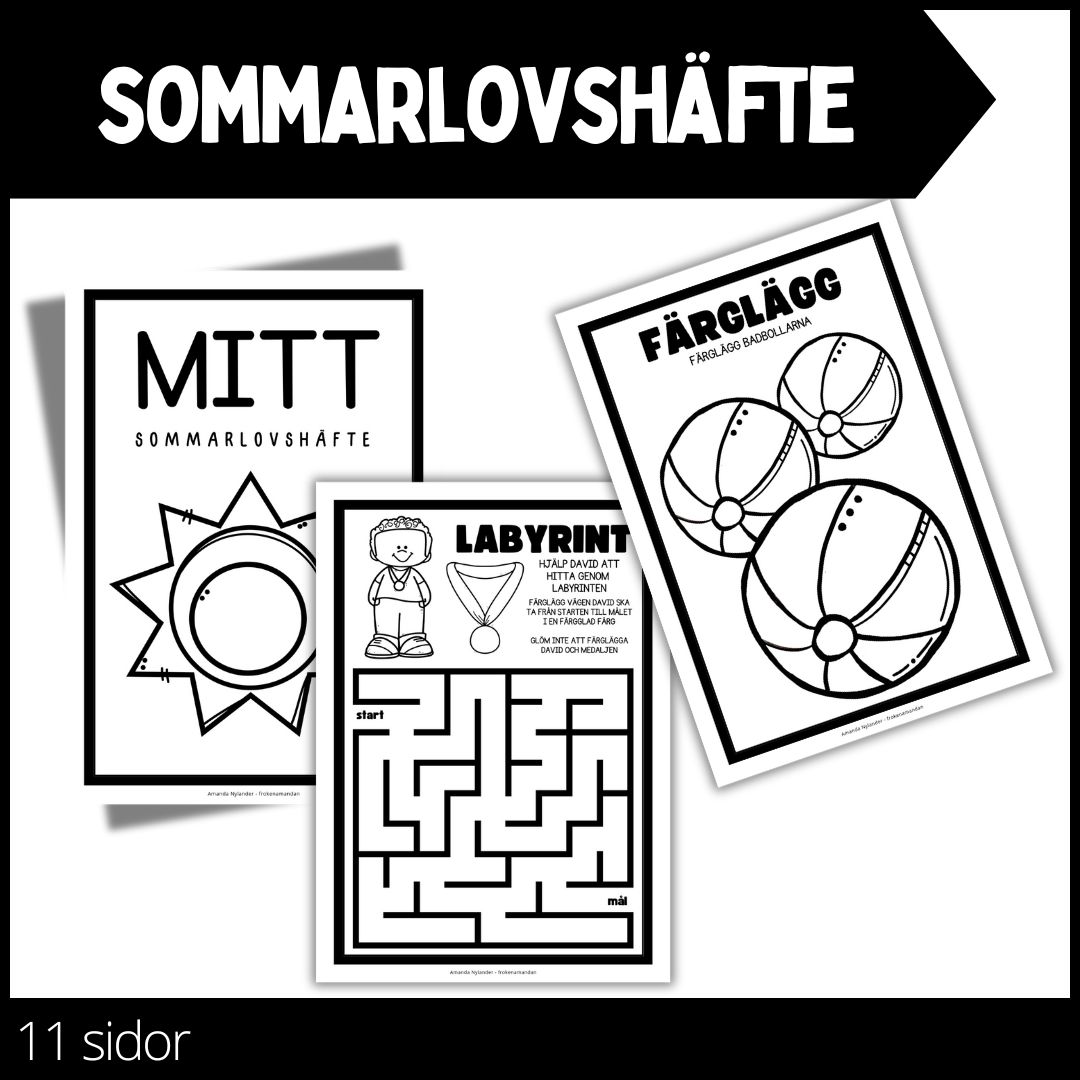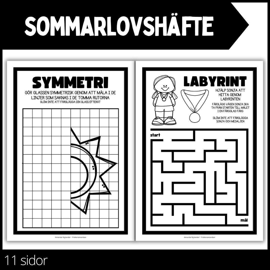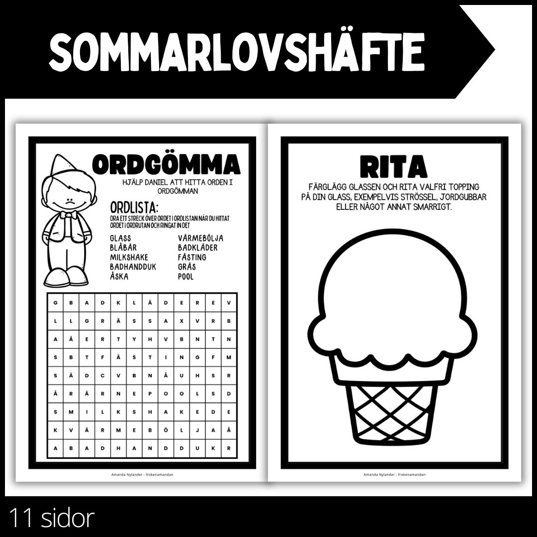 Ett sommarlovshäfte med blandade uppgifter. Totalt 11 sidor plus 1 framsida.
