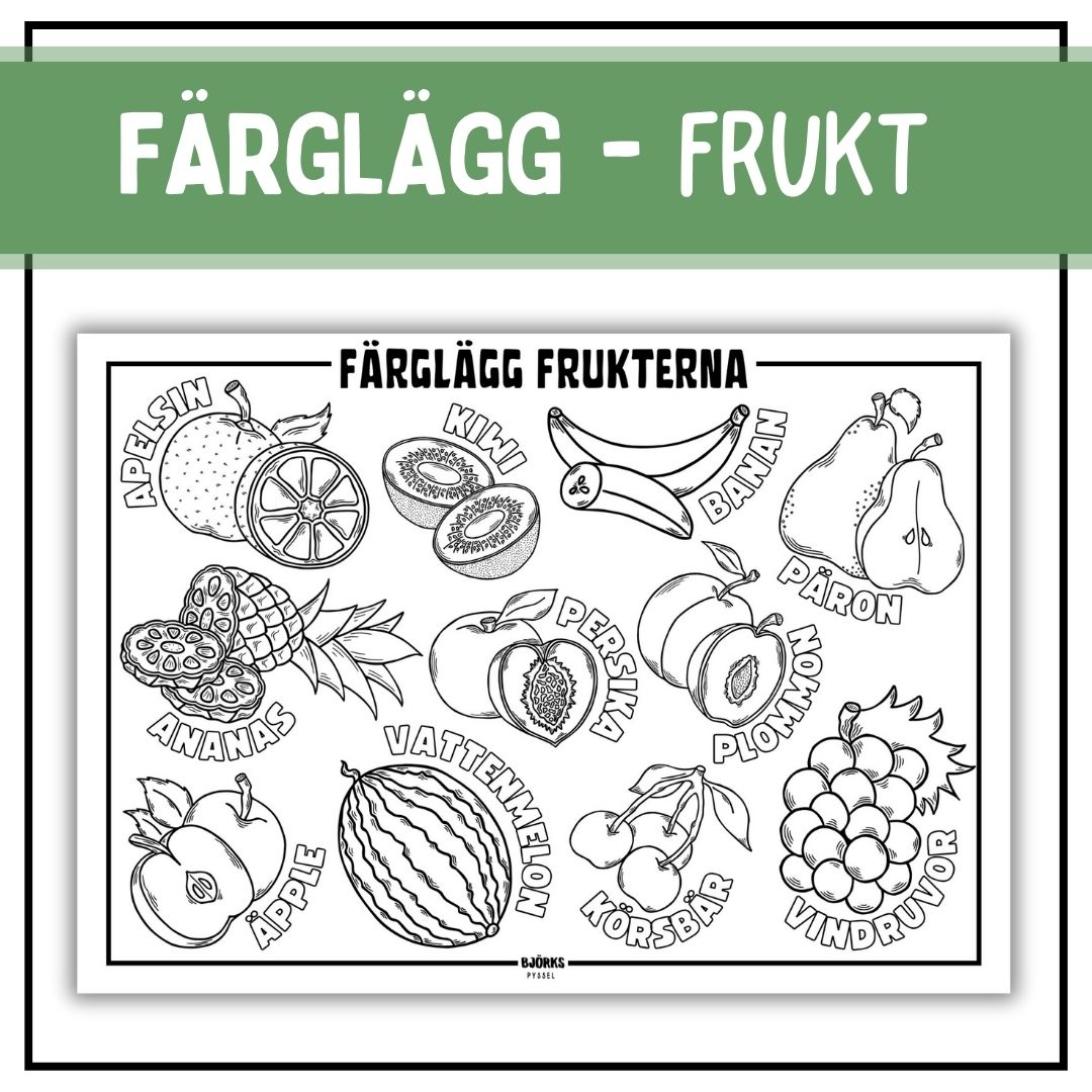 Låt eleverna färglägga frukterna, som en avslappnande aktivitet mellan olika moment eller vid högläsning.