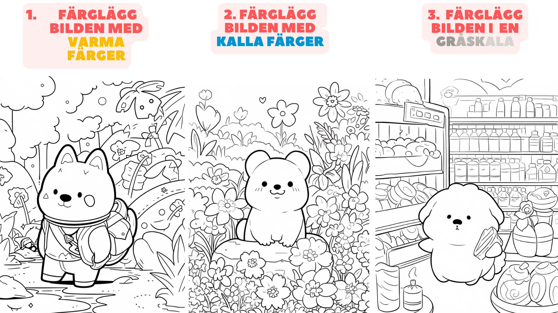 - Uppgift 2: Färglägg en bild med kalla färger.