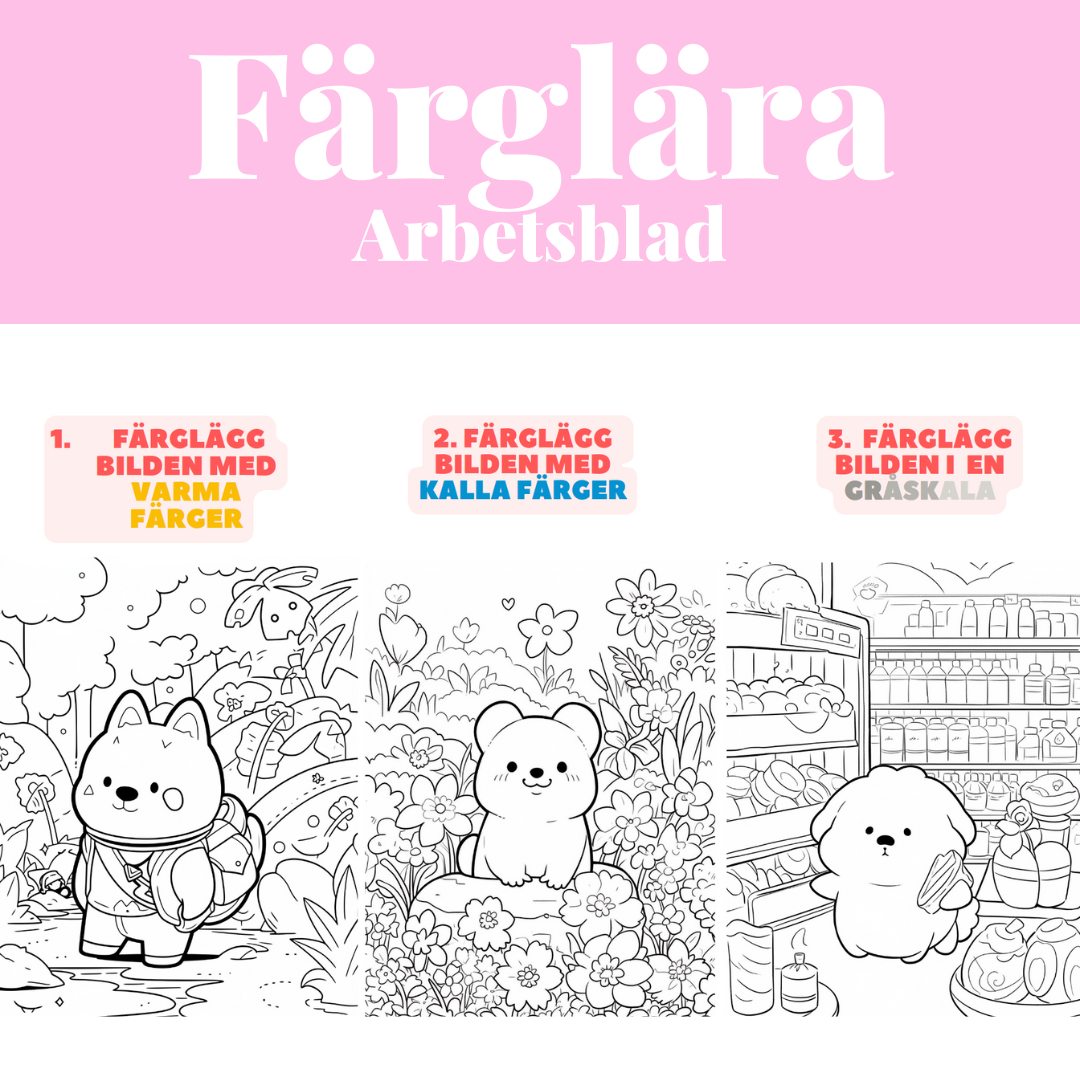 Ge dina elever möjligheten att utforska färglära med detta pedagogiska arbetsblad! Denna nedladdningsbara PDF-fil innehåller tre olika uppgifter som hjälper eleverna att förstå och tillämpa koncepten med varma och kalla färger samt gråskala. Alla tre uppgifterna är på ett arbetsblad och är perfekt att använda under lektioner om färglära.