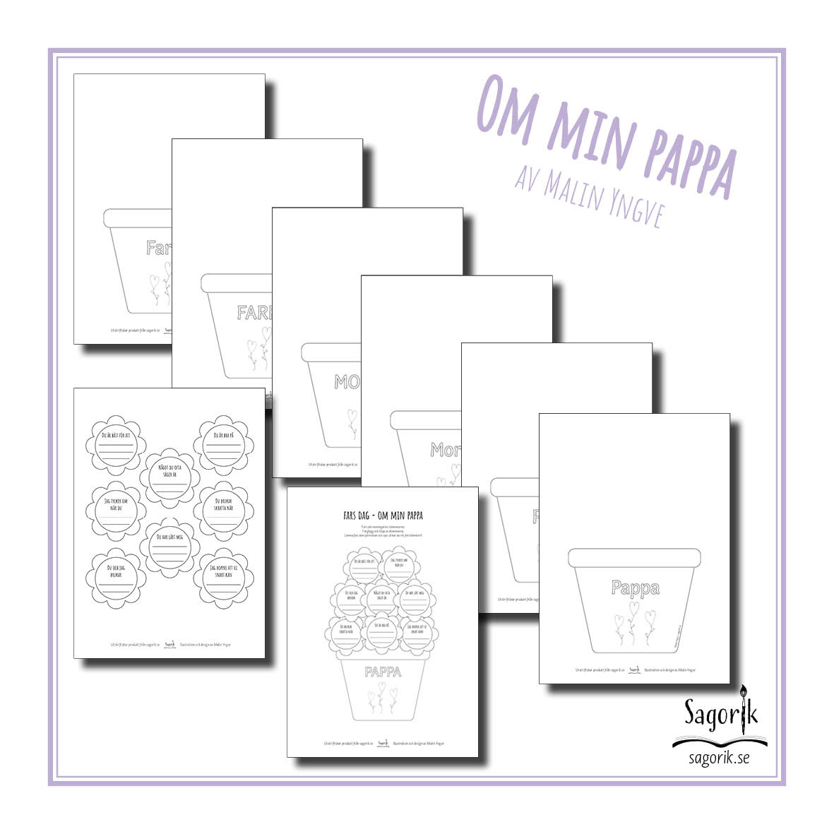 Texterna på krukorna finns med både små och stora bokstäver för både pappa, morfar och farfar. Fars dag Om min pappa passar perfekt att måla tillsammans med barnen, barnbarnen, på förskolan eller i skolan. Instruktioner med bild medföljer.