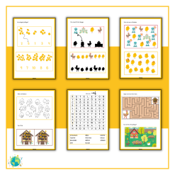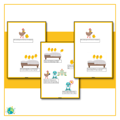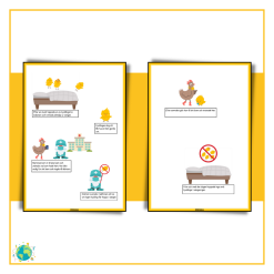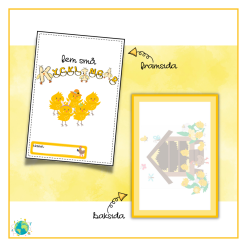 En berättelse om de fem små kycklingarna som hoppade i sängen. Text med bilder och blandade övningar.